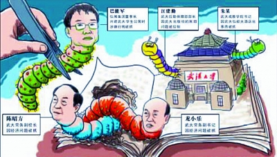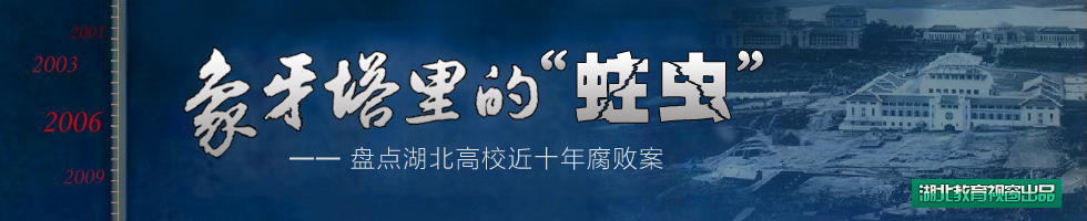 大學(xué),被人們譽為最圣潔的“象牙塔”。在國人的心目中,大學(xué)校長和大學(xué)教師理應(yīng)為人師表,理應(yīng)與貪污腐敗等社會丑惡現(xiàn)象無緣。然而,近幾年來,教育領(lǐng)域中的腐敗在媒體上頻頻曝光,已顯示出教育領(lǐng)域不再是清水一片,腐敗已經(jīng)從社會進入了學(xué)校這個神圣的殿堂。 近幾年,僅湖北省內(nèi)高校,因腐敗落馬的領(lǐng)導(dǎo)干部就不下數(shù)10位。連連曝光的高校腐敗案件令人觸目驚心。本網(wǎng)梳理近幾湖北高校的腐敗案件,以此警示處在社會轉(zhuǎn)型時期的高等教育,注重經(jīng)濟效益的同時,社會效益也是根本。