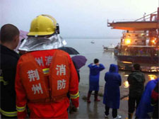 昨日15時,監(jiān)利江面天氣晴好,記者乘坐的船只緩緩靠近救援現(xiàn)場,在距離“東方之星”號約200米外停泊。沉船周圍,共有10多艘救援船只,包括吊裝船、海事船、巡邏艇、沖鋒舟等。16時,“東方之星”周圍的救援人員和小型救援船只撤離,起吊開始![詳細]