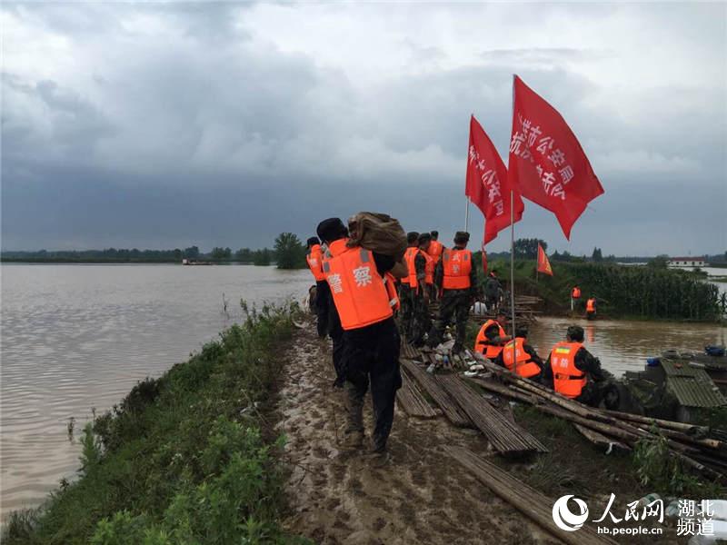 人民網(wǎng)鐘祥7月4日電 受連續(xù)強降雨影響,天門河荊門市屈家?guī)X管理區(qū)平原村五隊堤防段出現(xiàn)潰口,潰口處和鐘祥市相鄰,約長18米,水流湍急,該處潰口淹沒鐘祥舊口鎮(zhèn)貢士村、溫巷村、陳臺村三個村11000畝農(nóng)地,農(nóng)作物面臨絕收。為了盡可能減少受災(zāi)損失,7月4日凌晨5時,鐘祥公安民警、武警消防…