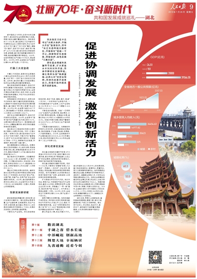 新中國成立70年來,在黨中央的正確領(lǐng)導(dǎo)下,湖北經(jīng)濟(jì)社會發(fā)展取得巨大成就,荊楚大地發(fā)生翻天覆地的變化。