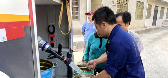 “水來了,有水了,消防員為我們送水了……自9月份以來持續(xù)的高溫無雨干旱天氣,致使水井及多處蓄水池干涸,嚴重影響農作物干枯,村民日常生活及畜飲水都受到威脅。咸寧市消防中隊在統(tǒng)一安排部署下持續(xù)為轄區(qū)各個鄉(xiāng)鎮(zhèn)、村莊送水,解燃眉之急。