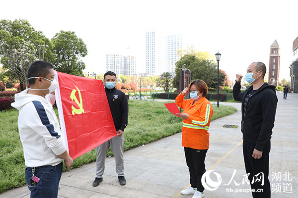 人民網(wǎng)武漢3月20人電 “我志愿加入中國共產(chǎn)黨,擁護(hù)黨的綱領(lǐng),遵守黨的章程......”3月20日上午,一場特別的火線入黨儀式在武漢市洪山區(qū)一隔離酒店樓下舉行,在定點醫(yī)療點內(nèi)工作了25天的洪山區(qū)城管執(zhí)法局清掃一隊工作人員南海實現(xiàn)了自己的心愿,面對黨旗莊嚴(yán)宣誓,成為了一名預(yù)備黨員。 洪山區(qū)黨…[詳細(xì)]