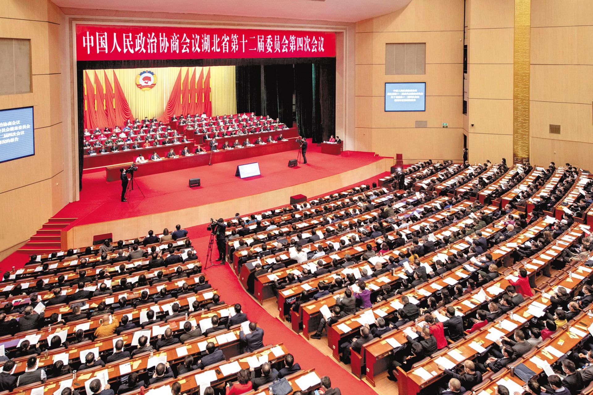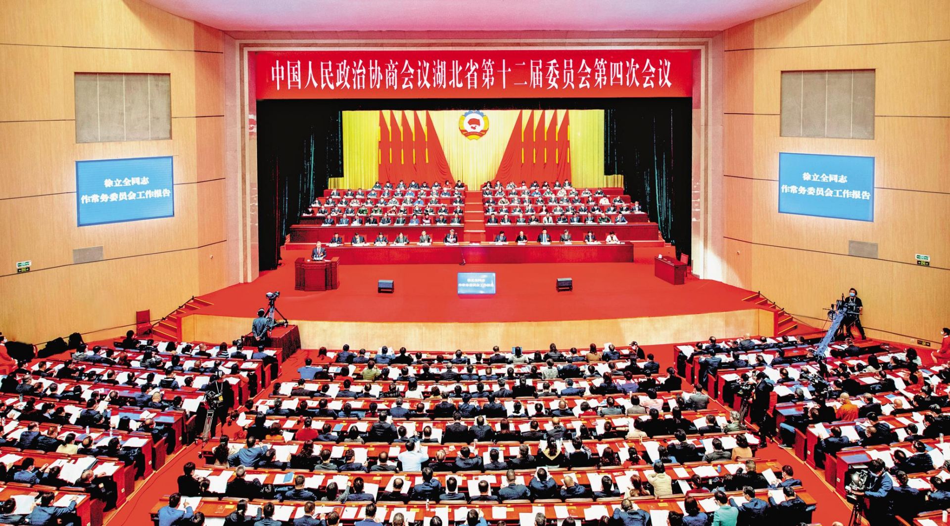 政協(xié)湖北省十二屆四次會議閉幕大會現(xiàn)場(湖北日報全媒記者 魏錸 攝)
