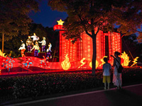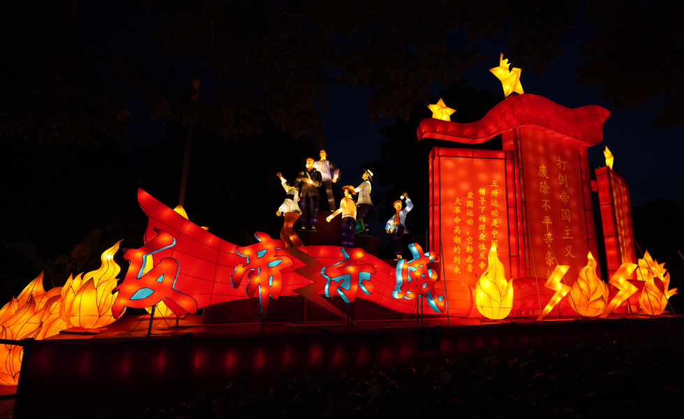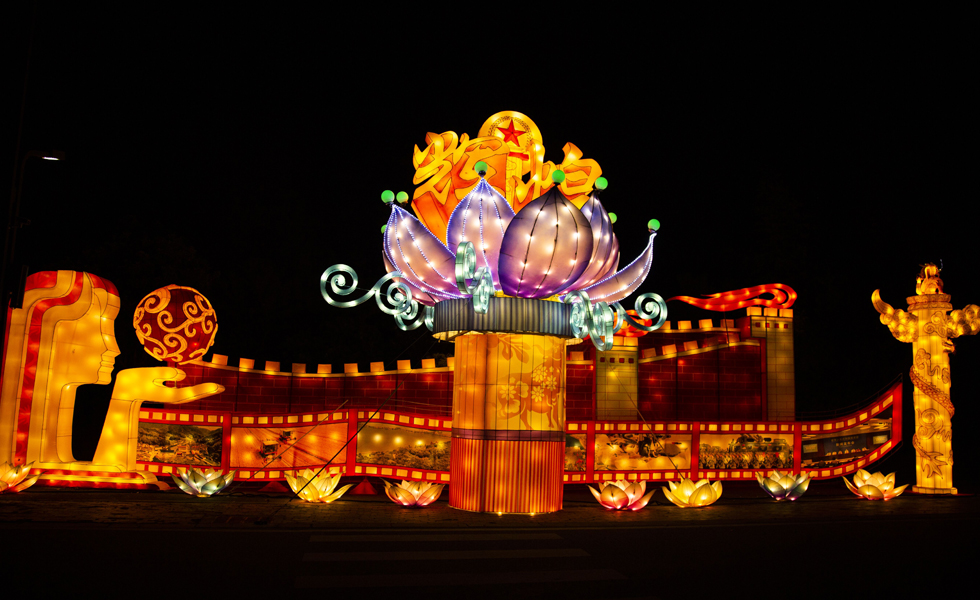 “百年正風(fēng)華一一中共黨史知識(shí)彩燈會(huì)”在黨課中開(kāi)啟六十個(gè)燈組、上百個(gè)造型燈,匯集二百余個(gè)歷史場(chǎng)景,用燈光長(zhǎng)廊引導(dǎo),將分散于林蔭道上的黨史燈組有機(jī)組合…