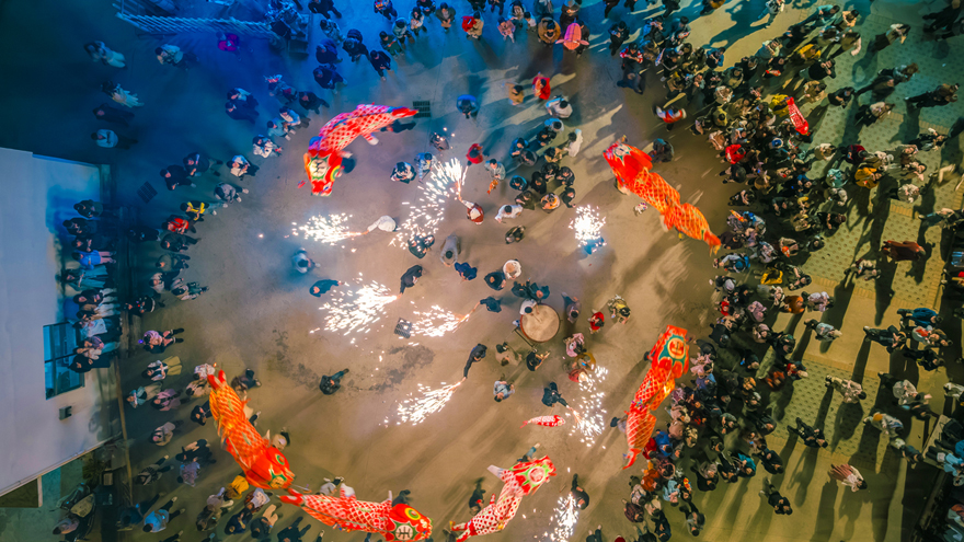 2025年3月22日,安徽省黃山市歙縣北岸鎮(zhèn)瞻淇古村落內(nèi),一場極具傳統(tǒng)韻味的魚燈巡游活動精彩上演。青石板古巷間,色彩斑斕的魚燈穿梭游弋,滿巷歡騰,吸引眾多游客、攝影愛好者匯聚于此,共同感受非遺民俗的獨特魅力。