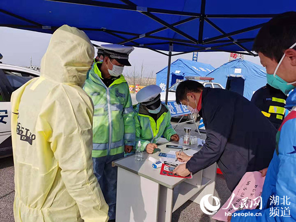 一路繼續(xù)向北,在黃州區(qū)和團風縣交界處,又是下車量體溫、登記。進入團風縣城,主干道上,每走一段,都有一個卡口。執(zhí)勤的民警介紹,縣城里的12個十字路口都設(shè)了關(guān)卡,沒有縣防控指揮部下發(fā)的臨時通行證,不得隨意通行。