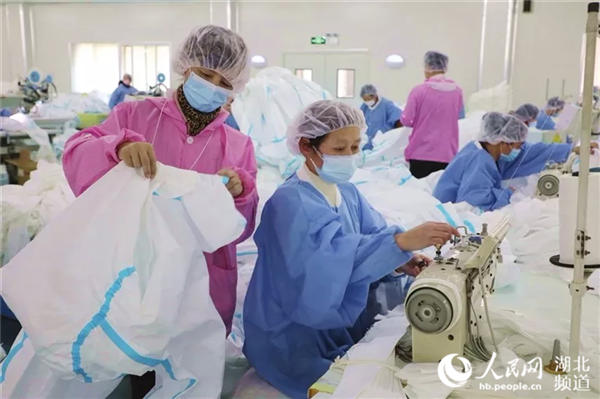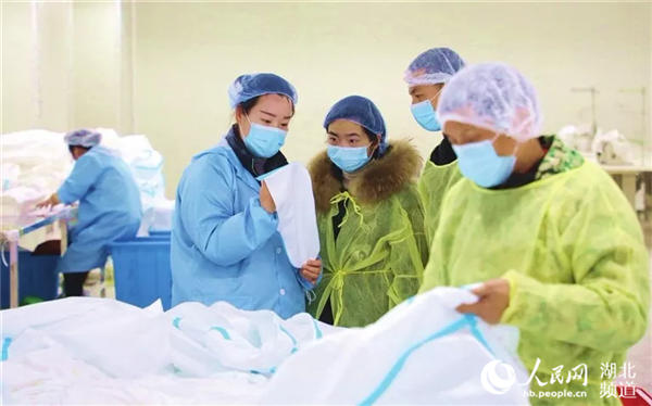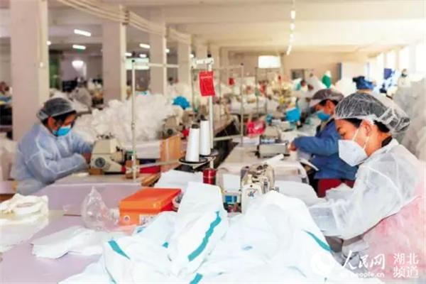 大年三十,仙桃按省防控疫情指揮部要求,確定了“非常1+6”布局,由拓盈公司提供原材料,由譽(yù)誠(chéng)、裕民、致霖、富仕達(dá)、泰晨、泰威6家企業(yè)生產(chǎn)醫(yī)用防護(hù)服。同時(shí),仙桃市政府成立了包括水、電、氣、金融、交通、公安等部門(mén)在內(nèi)的工作專班,對(duì)企業(yè)實(shí)行“六統(tǒng)一”,統(tǒng)一調(diào)劑采購(gòu)設(shè)備、統(tǒng)一原材料供應(yīng)、統(tǒng)一員工防護(hù)食宿、統(tǒng)一質(zhì)量檢測(cè)、統(tǒng)一裝箱運(yùn)輸、統(tǒng)一撥付資金。短短半個(gè)月,仙桃市幫助企業(yè)添置貼條機(jī)190多臺(tái),從省內(nèi)外招收貼條工150多名,培養(yǎng)熟練工200多名。金融部門(mén)向包括“非常1+6”在內(nèi)的14家企業(yè)提供貸款3.7億多元。