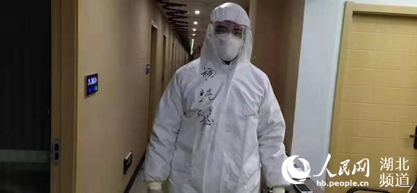 每天晚上11點(diǎn)半,他就得穿好防護(hù)服,做好消毒接替上一個(gè)班次的城管隊(duì)員!巴ǔN易鲆恍┤藛T進(jìn)出登記,如果有病人離開賓館,我和隊(duì)友一起要清理一下房間,消毒后迎接新的病人入住!