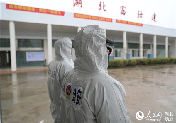 “車間門口一位只露出眼睛的工作人員站得筆挺!边@是人民日報記者在仙桃市彭場鎮(zhèn)裕民防護用品公司看到的一幕,這位記者眼中的工作人員其實是正在執(zhí)勤的民警。