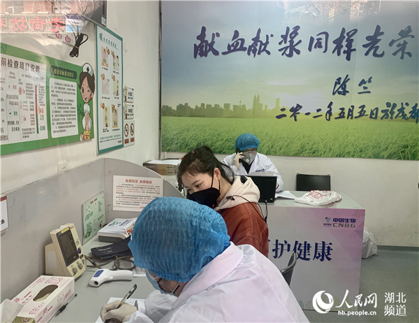人民網(wǎng)武漢2月19日電 (張沛)19日上午9點(diǎn)半,新冠肺炎康復(fù)者、武漢大學(xué)人民醫(yī)院急診科護(hù)士賈娜來(lái)到愛(ài)心獻(xiàn)血點(diǎn),卷起衣袖捐獻(xiàn)血漿?祻(fù)一周后,從新冠肺炎中痊愈的賈娜已經(jīng)重返工作崗位。