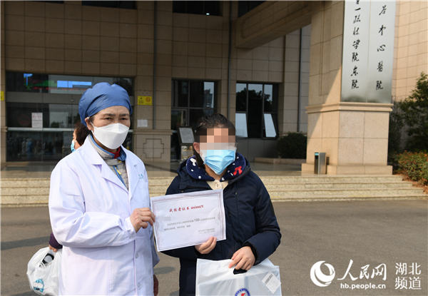 人民網(wǎng)武漢2月24日電 24日下午3時(shí),武漢大學(xué)人民醫(yī)院東院區(qū)又有19名新冠肺炎重癥患者治愈出院,該院區(qū)累計(jì)治愈出院患者已達(dá)118人。除了康復(fù)出院的喜悅,他們更收獲了一份特別的禮物:李蘭娟院士和東院區(qū)肖紅軍院長(zhǎng)為每一位出院者頒發(fā)“戰(zhàn)勝者”證書。
