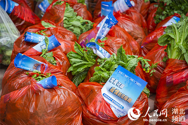 記者在現(xiàn)場看到,每個蔬菜袋子里有放有一張醒目的彩色折頁。這張名為《常青花園疫情防控指南》的折頁,附有武漢市新冠肺炎疫情防控指揮部通告和居家防護小貼士。折頁封底上,印有六個社區(qū)值班電話和常青花園社管辦24小時值班電話;另外,蔬菜團購和日用品APP采購方法,也有詳細的操作提示。