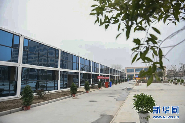 圖為潛江市應急醫(yī)院醫(yī)療隊宿舍區(qū)外景。新華網發(fā)
