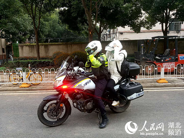 3月5日上午,武昌區(qū)交通大隊漢警快騎隊員毛歐陽、夏盼在湖北大學康復(fù)中心周邊進行巡控,這時,一女子前來求助,稱其是一名醫(yī)務(wù)人員,由于交班時間延誤,錯過班車時間,而其患有關(guān)節(jié)炎,無法騎單車返回,希望能幫助返回徐東駐地酒店。為了讓醫(yī)護人員能夠及時休息,核實身份后,毛歐陽立即將女子送回住宿地。