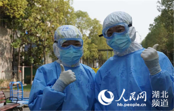 在醫(yī)護(hù)人員專用通道,記者遇到了來自西安國(guó)際醫(yī)學(xué)中心醫(yī)院支援湖北的醫(yī)療隊(duì)正在交接班。這支醫(yī)療團(tuán)隊(duì)從2月3日接到任務(wù)后從西安出發(fā)抵達(dá)武漢市第八醫(yī)院進(jìn)行救治新冠肺炎病人,隨著疫情好轉(zhuǎn),目前轉(zhuǎn)戰(zhàn)長(zhǎng)江新城康復(fù)驛站,繼續(xù)為康復(fù)人員進(jìn)行治療和心理疏導(dǎo)。