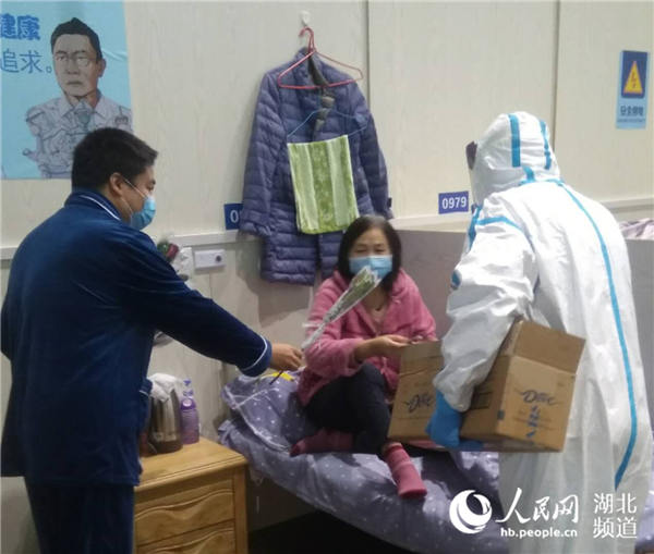為了加快康復(fù)進(jìn)程,驛站廣播站分時(shí)段播放與湖北省應(yīng)急廣播FM927聯(lián)合制作的《驛站晨曲—民歌正飛揚(yáng)》《健康快車道》《音樂的力量》等廣播欄目,還開設(shè)了氣功八段錦視頻公益課堂,志愿者帶著大家伸展身體、適度活動,讓身心得到愉悅。恰逢“三八”國際勞動?jì)D女節(jié),志愿者們向正在驛站內(nèi)辛勤工作的醫(yī)護(hù)人員,特別是接受康復(fù)觀察的女同胞們致以誠摯的慰問,并向她們送上鮮花和巧克力。