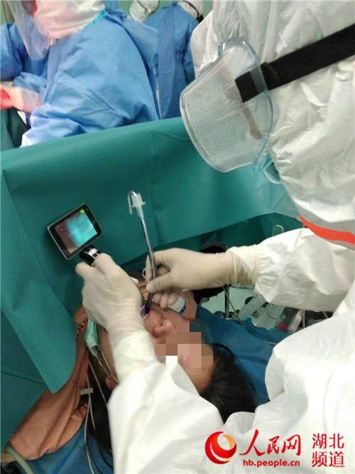 為患者進(jìn)行氣管插管(武漢市中心醫(yī)院供圖)