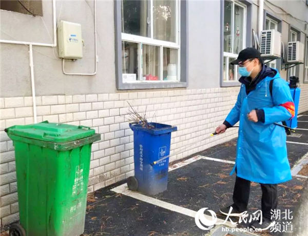 武漢地鐵集團(tuán)下沉黨員深入社區(qū)開展消殺(屈炎 攝)