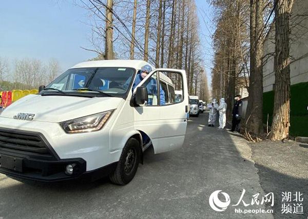 武漢市江岸區(qū)轄區(qū)內(nèi)各街道特意安排了較新的車輛過來接“親人”回家。攝影:何國瓊 潘東紅