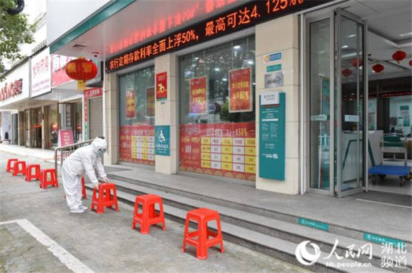 “測(cè)量體溫-登記信息-雙手消毒-鞋底消毒-進(jìn)入大廳”,各復(fù)工網(wǎng)點(diǎn)營(yíng)業(yè)經(jīng)理嚴(yán)格按照流程對(duì)每一位進(jìn)入網(wǎng)點(diǎn)的客戶做好防疫監(jiān)測(cè),營(yíng)業(yè)大廳內(nèi)客流量嚴(yán)格控制在三人以內(nèi),廳堂外有序引導(dǎo)客戶間隔1.5米排隊(duì)等候。