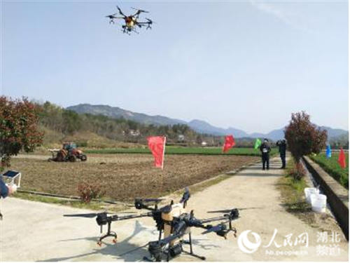 3月19日,在黃岡市羅田縣白廟河鎮(zhèn)潘祠村外的一片農(nóng)田里,5臺(tái)拖拉機(jī)在田間來回穿梭,所到之處農(nóng)田平整松軟,2臺(tái)無人植保機(jī)空中飛防,將高度霧化的農(nóng)藥均勻噴灑在小麥葉片上,1臺(tái)自走式育秧播種機(jī)田間育秧一氣呵成,各類農(nóng)機(jī)同時(shí)作業(yè),繪制出了一幅全方位、立體化的春耕生產(chǎn)畫卷。