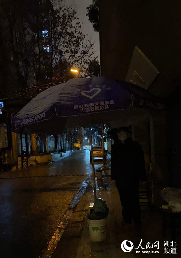 3月21日凌晨三點(diǎn),武漢市水果湖街北環(huán)路社區(qū)下沉黨員鐘華在二小知音大廈點(diǎn)位值守了3個(gè)小時(shí)夜班,正與輪崗?fù)具M(jìn)行交班。防疫期間,這樣的夜,鐘華見過無數(shù)次。