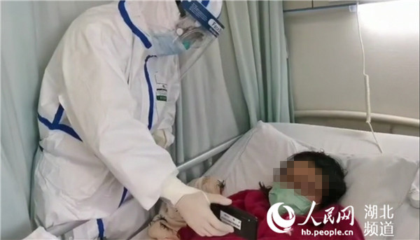不幸感染新冠肺炎的產(chǎn)婦通過視頻和隔離中的寶寶團聚。(童萱 攝)