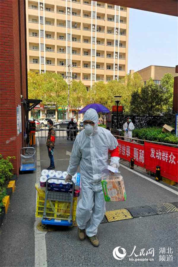 一邊安撫老人,一邊聯(lián)系社區(qū)書記王學(xué)芳,還細心的請書記幫忙帶些吃的來。他和王書記分頭行事,一人負責(zé)查詢老人的身體健康狀況并出具社區(qū)證明,與珞桂社區(qū)對接,一人去買水果和口罩并聯(lián)絡(luò)社區(qū)車輛,一直忙到下午6點,將老人安全送回兒子家中才回來。