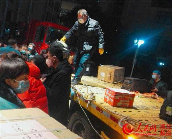 蘇志斌深夜指揮運(yùn)輸支援湖北醫(yī)療隊(duì)行李。(陶媛 攝)