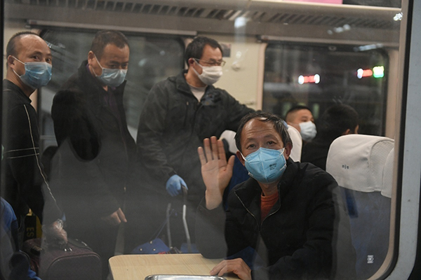 圖為4月8日凌晨乘坐高鐵離開武漢的旅客。趙安平 攝