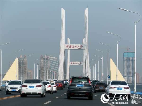 4月8日,在武漢長江二橋,車輛有序通過。(王方 攝)