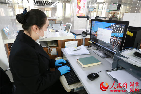 工程建設(shè)類窗口工作人員夏晴提供在線咨詢服務(wù)。(肖滿 攝)