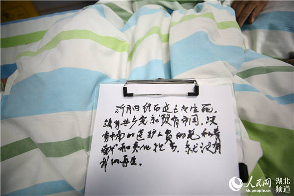 武漢雷神山醫(yī)院4月15日正式“休艙”,最后的4名危重癥患者新冠肺炎病毒檢測全部轉陰,但因嚴重的并發(fā)癥和基礎疾病,被轉入武漢大學中南醫(yī)院ICU繼續(xù)救治。4月20日傳來好消息,其中一名六旬患者已經脫離生命危險,意識清醒,他用紙筆寫下內容簡短卻情真意切的一封信,向醫(yī)護人員表示感謝。