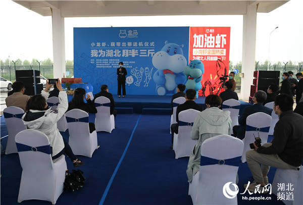 小龍蝦、藕帶出鄂送機(jī)儀式活動(dòng)現(xiàn)場(chǎng)(吳燕軍攝)