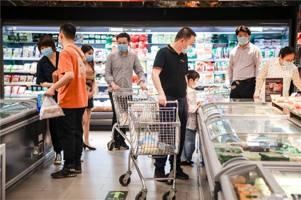 武漢市武昌區(qū)漢街萬達(dá)廣場的一家超市內(nèi),消費(fèi)者在選購商品