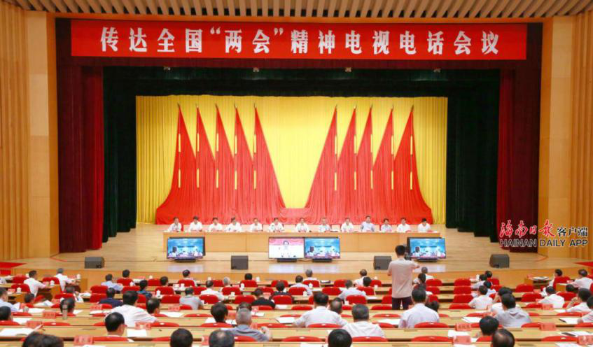 海南省委召開(kāi)傳達(dá)全國(guó)兩會(huì)精神電視電話會(huì)議(來(lái)源:海南日?qǐng)?bào))