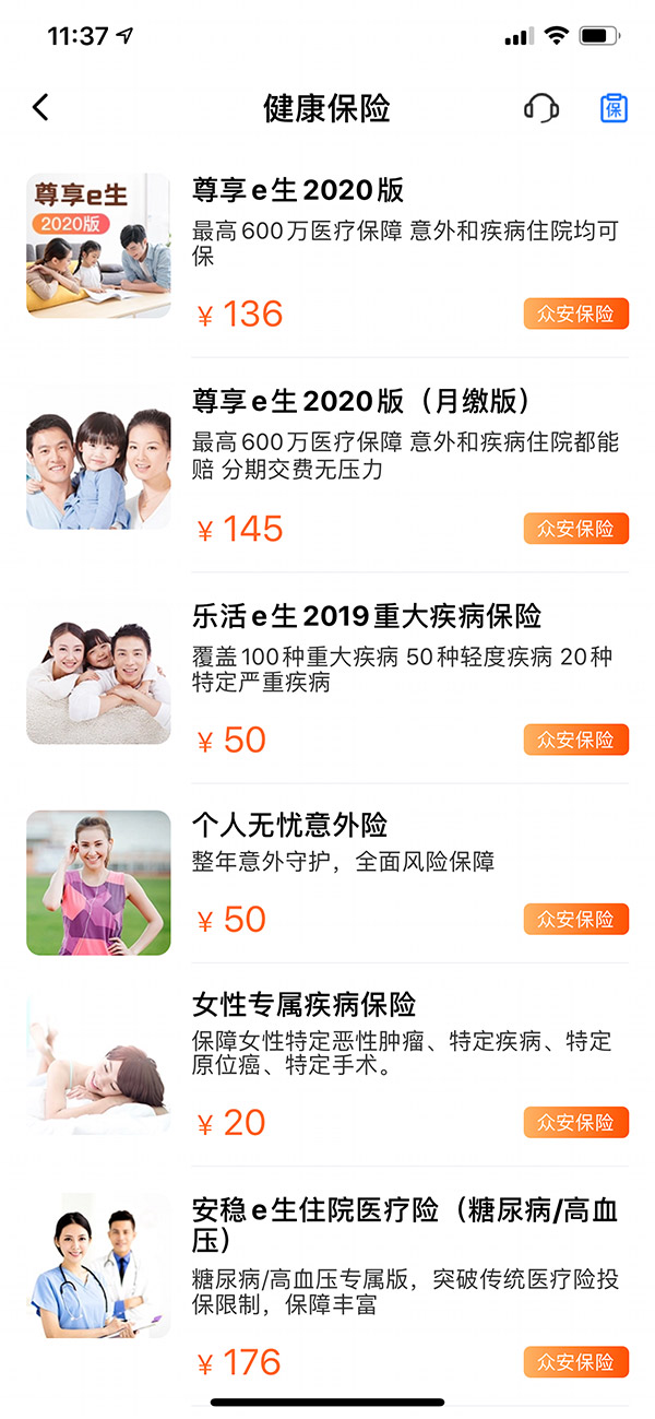 “營養(yǎng)e生”APP與國內(nèi)知名保險(xiǎn)公司合作,為用戶提供線上便捷、專屬的“健康醫(yī)療險(xiǎn)”、“意外險(xiǎn)”等保險(xiǎn)服務(wù)。其中,與泰康人壽合作推出的“百萬醫(yī)療險(xiǎn)”可以享受無免賠額、無等待期、不限定點(diǎn)醫(yī)院的三項(xiàng)新冠肺炎特殊保障,還可以對(duì)心梗、惡性腫瘤、腦中風(fēng)等99種重疾施行600萬保額0免賠。