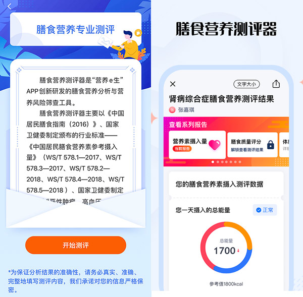 可能會(huì)有人問(wèn),那怎樣才能快速便捷地知道自己的日常膳食是夠健康合理呢?“營(yíng)養(yǎng)e生”APP內(nèi)置了一款膳食營(yíng)養(yǎng)測(cè)評(píng)器,能提供全面的膳食營(yíng)養(yǎng)測(cè)評(píng)結(jié)果和專業(yè)的膳食營(yíng)養(yǎng)指導(dǎo),還能對(duì)300余種慢病進(jìn)行營(yíng)養(yǎng)測(cè)評(píng),覆蓋健康人群、亞健康人群、慢病人群、術(shù)后人群及有體重管理需求的人群。