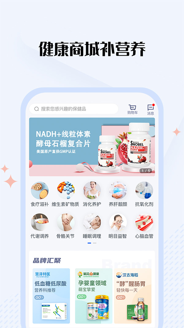 保健商城還是“營(yíng)養(yǎng)e生”APP用戶的購(gòu)買輔助工具,在健康管理師為用戶定制營(yíng)養(yǎng)干預(yù)綜合解決方案的時(shí)候,完成即時(shí)精準(zhǔn)推薦,安全方便地幫助用戶購(gòu)買所需的特醫(yī)食品和其他營(yíng)養(yǎng)保健品,省時(shí)又省力。