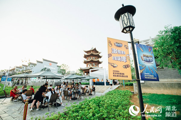 日落西山,站在碼頭潭文化遺址公園(碼頭潭文旅小鎮(zhèn))的休閑亭臺上,既可將武漢啤酒節(jié)東西湖主會(huì)場的主舞臺盡收眼中,又可享受霞光漫天的夕陽風(fēng)光。橫穿公園的小河邊,種滿柳樹,夜風(fēng)穿過柳枝拂去游客身上的燥熱。