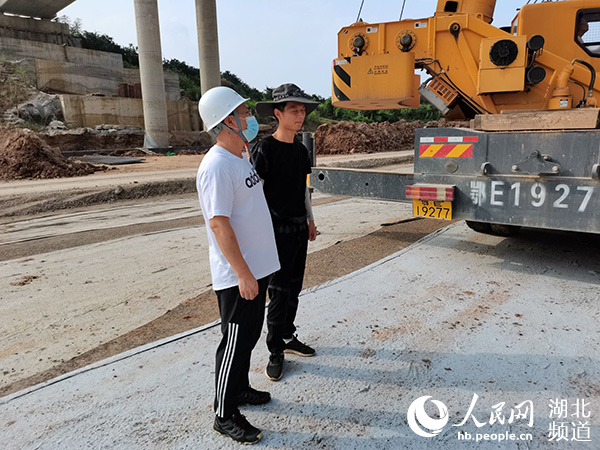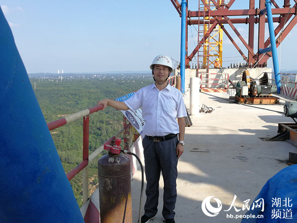 “停下來,快停下來,成捆的鋼筋不能單點吊,要雙邊吊才符合規(guī)范!焙卑籽箝L江公路大橋有限公司安全管理部部長盧勇在施工現(xiàn)場巡查,當(dāng)發(fā)現(xiàn)安全隱患時,恪盡職守保障項目建設(shè)。