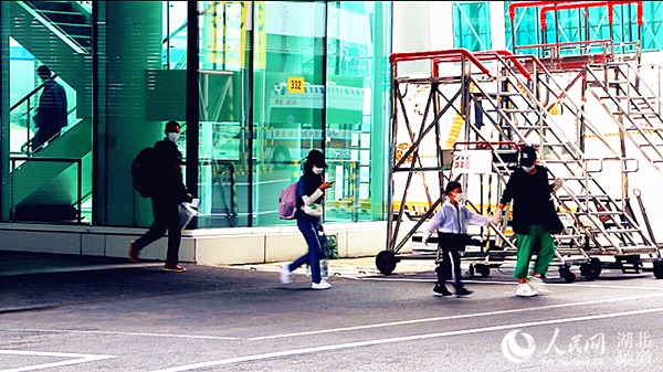 首班復(fù)航飛機(jī)搭載60名乘客抵達(dá)武漢。(金雨蒙 攝)
