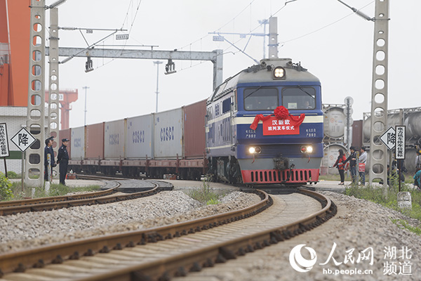 一趟集裝箱國(guó)際班列準(zhǔn)時(shí)從武漢吳家山鐵路集裝箱中心站發(fā)出駛向歐洲。 (綜合保稅物流產(chǎn)業(yè)建設(shè)管理辦公室供圖)
