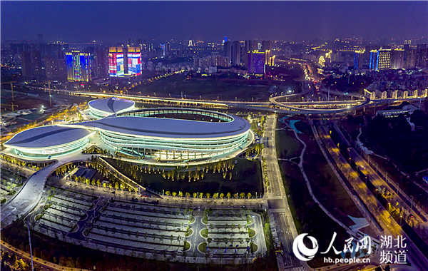 武漢五環(huán)體育中心“燈光秀”。(徐一帆 攝)
