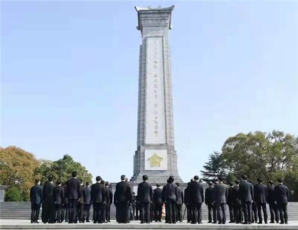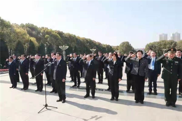 湖北省領(lǐng)導(dǎo)面向革命烈士紀(jì)念碑列隊(duì)肅立。陳?ài)E攝