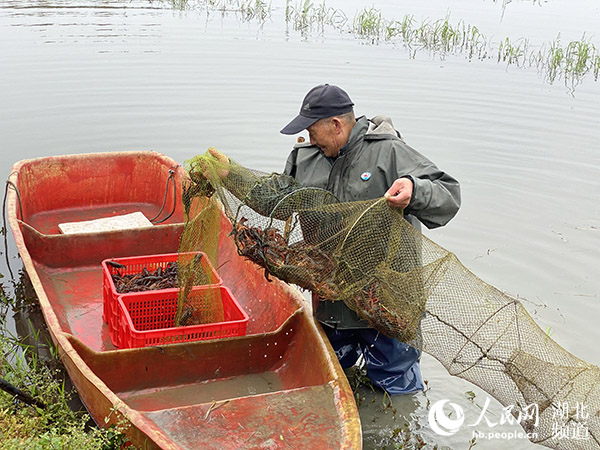 湖北潛江,蝦農(nóng)正在捕蝦。人民網(wǎng) 張沛攝