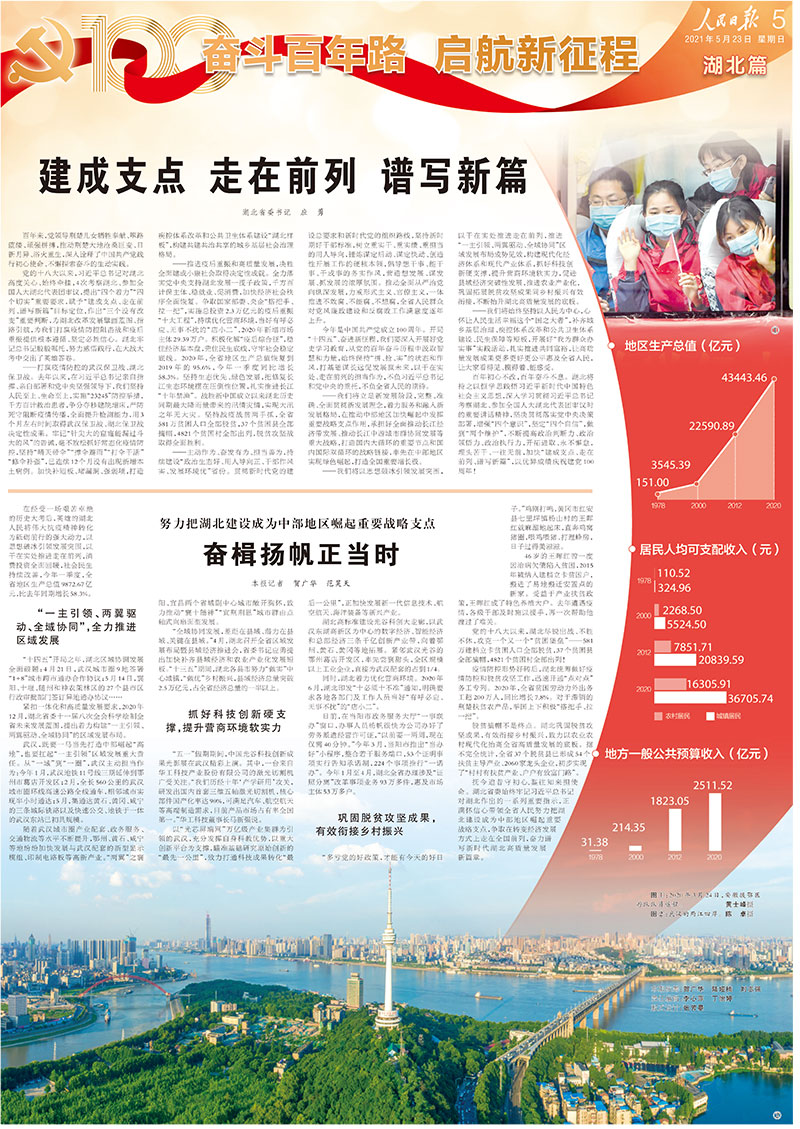 百年初心不改,百年奮斗不息。湖北將持之以恒學思踐悟習近平新時代中國特色社會主義思想,深入學習貫徹習近平總書記考察湖北、參加全國人大湖北代表團審議時的重要講話精神,堅決貫徹落實黨中央決策部署,增強“四個意識”,堅定“四個自信”,做到“兩個維護”,不斷提高政治判斷力、政治領(lǐng)悟力、政治執(zhí)行力,開拓進取、永不懈怠,埋頭苦干、一往無前,加快“建成支點、走在前列、譜寫新篇”,以優(yōu)異成績慶祝建黨100周年!