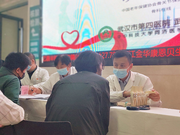 武漢市第四醫(yī)院緊密型醫(yī)聯(lián)體單位——硚口區(qū)漢中街社區(qū)衛(wèi)生服務(wù)中心積極參與本次活動。300多位慕名而來的市民,圍著武漢市第四醫(yī)院的下肢骨關(guān)節(jié)黨員專家,咨詢愛膝護膝相關(guān)問題。