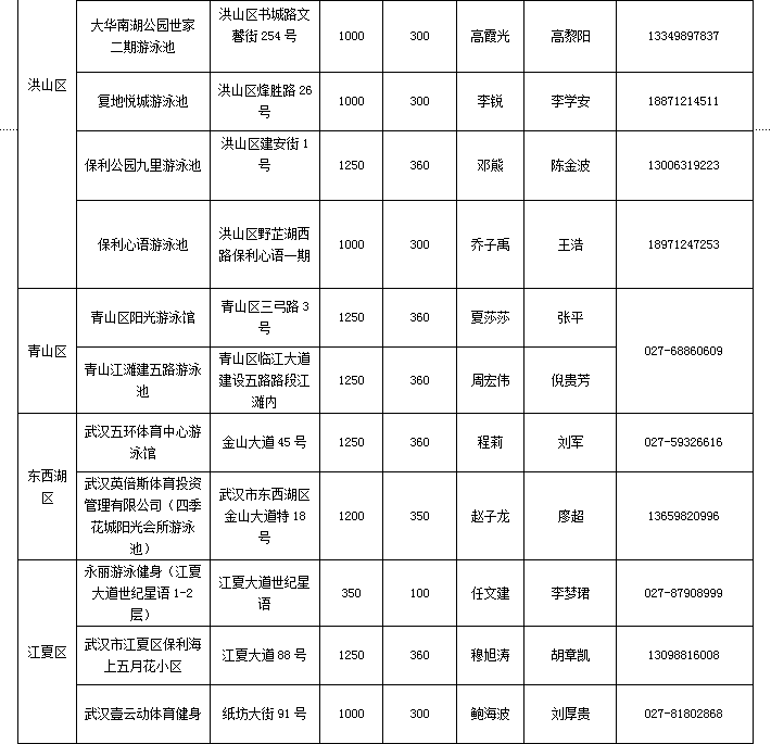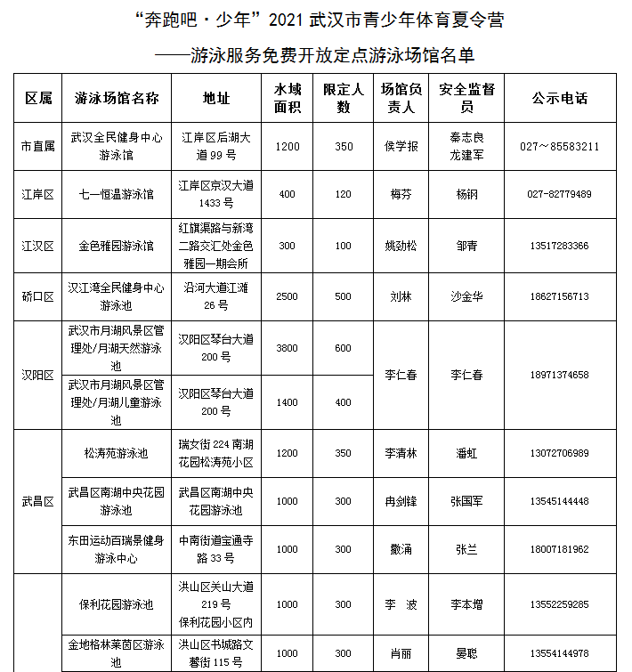 附:“奔跑吧·少年”2021武漢市青少年體育夏令營——游泳服務(wù)免費開放定點游泳場館名單