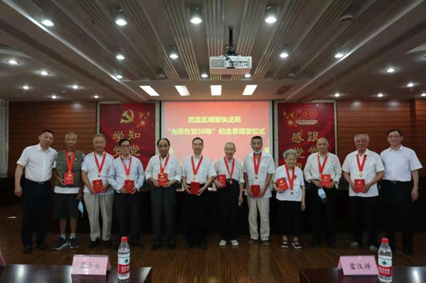 武昌城管老黨員集中獲頒“光榮在黨50年”紀(jì)念章。殷莉紅攝